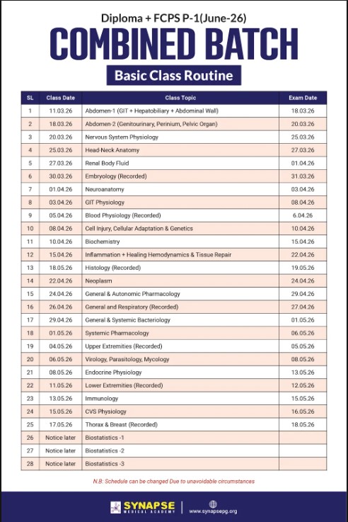 FCPS P-1 ফ্যাকাল্টি ওয়াইজ ক্লিনিক্যাল টেক্সটবুক+বেসিক ক্লাস পাবেন এখন। জুন মাস থেকে ডিপ্লোমা ফোকাসড ক্লাস শুরু হবে প্রতি শুক্রবার ১ টি করে। ক্লাসগুলো Zoom এ লাইভ হবে। ওয়েবসাইটের মাধ্যমে রেকর্ডেড থাকবে। সকল ক্লাসের এক্সেস Diploma Exam 2027 পর্যন্ত থাকবে।