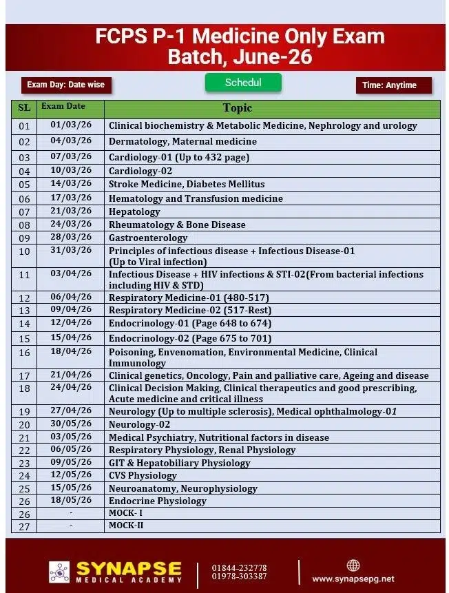 FCPS-1 Medicine Only Exam Batch June-26