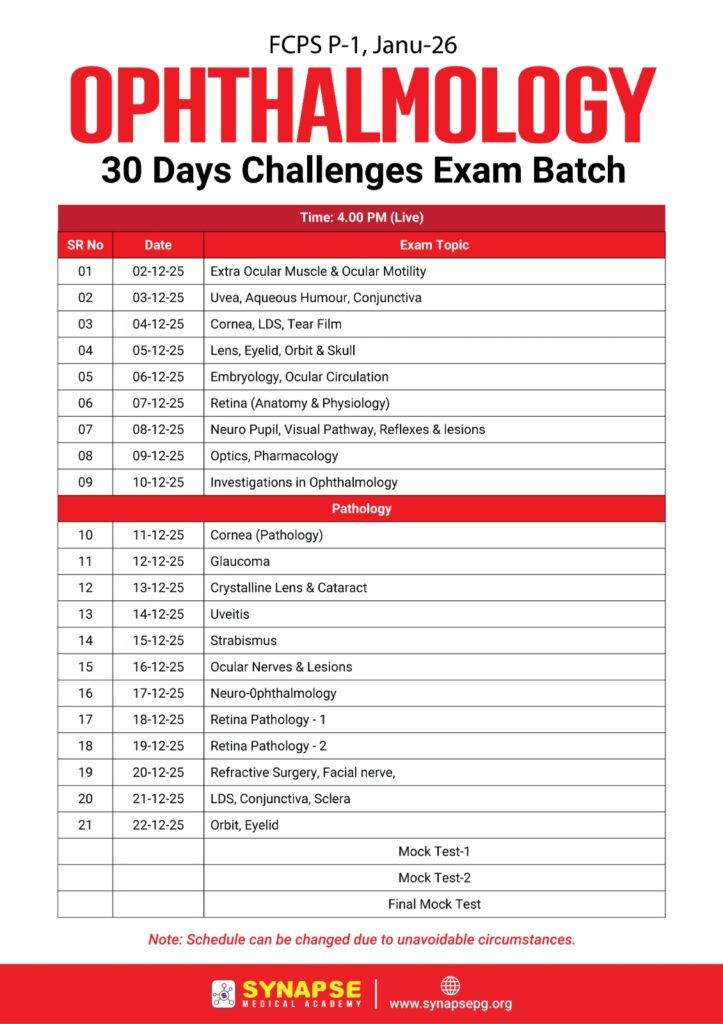 FCPS P-1 Ophthalmology 30 Days Only Exam Batch Jan-26