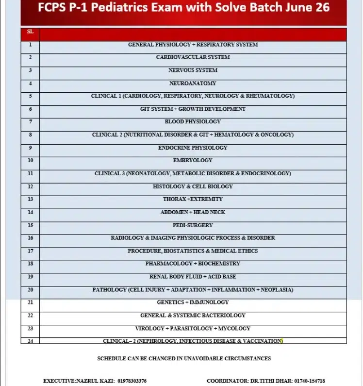 FCPS P-1 Pediatrics 3 months Challenge Exam Solve Batch,