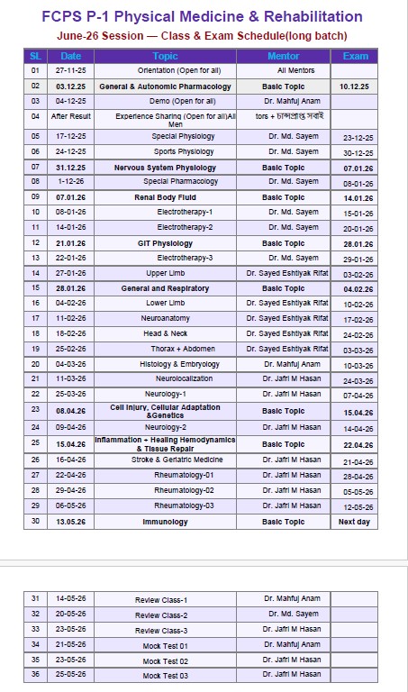FCPS P-1 Physical Medicine Intensive Care Long Batch, June-2026