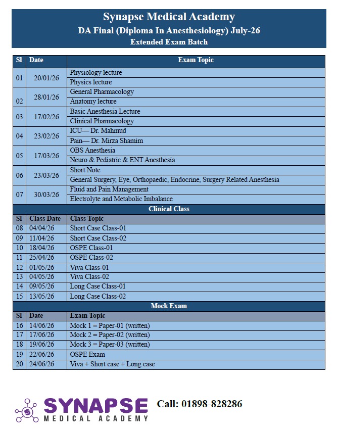 DA Final (Diploma In Aneasthesiology) Extended Exam Batch, July-26