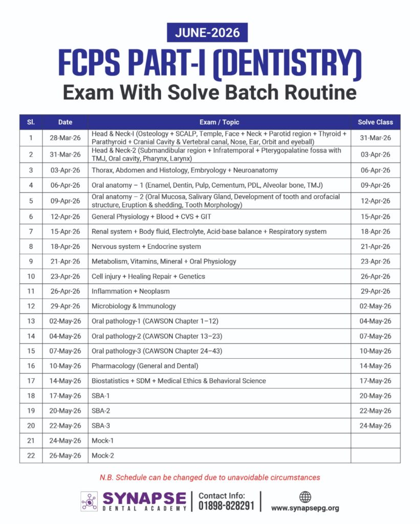 FCPS P-1 DENTISTRY Exam with Solve Batch, June-26