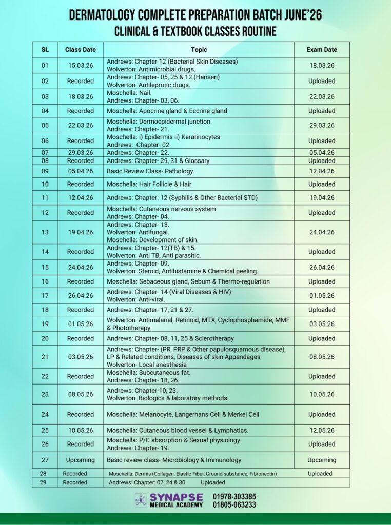 ◼ 14 Derma Focused Basic Class  (Some will be recorded)