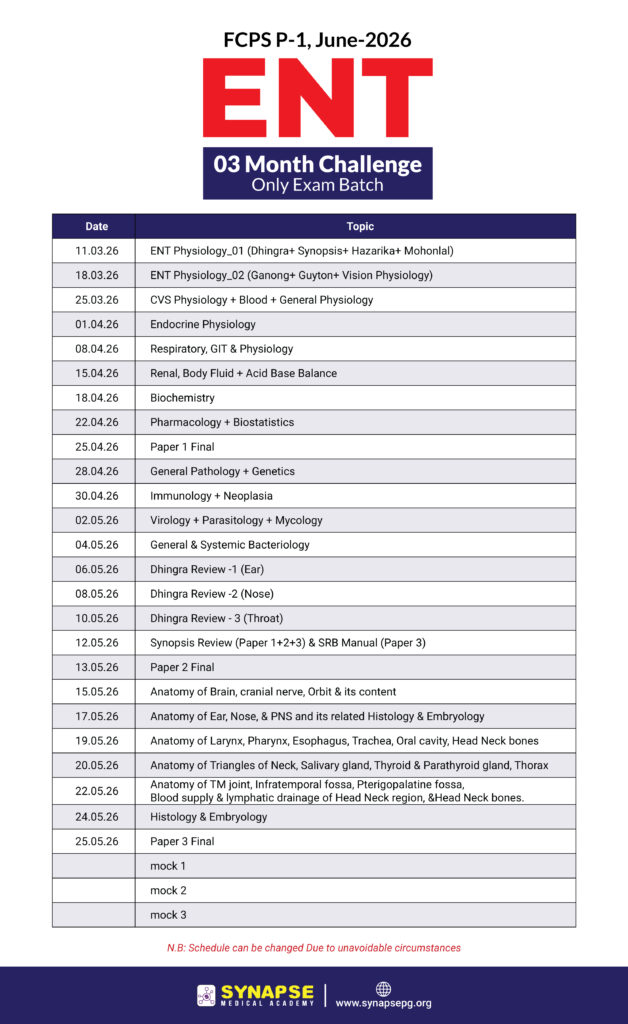 FCPS P-1 ENT3 Month challenge Only Exam Batch For June-26