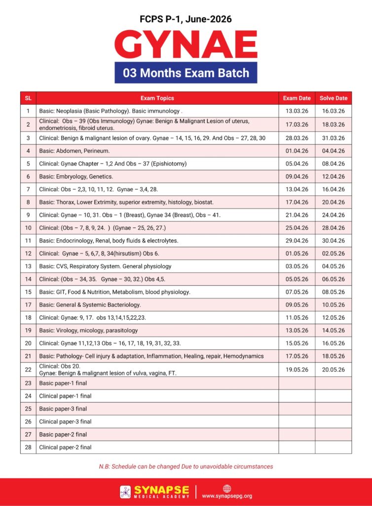 জুন ২০২6 Gynae FCPS Part-1 পরীক্ষার্থীদের জন্য সুখবর!