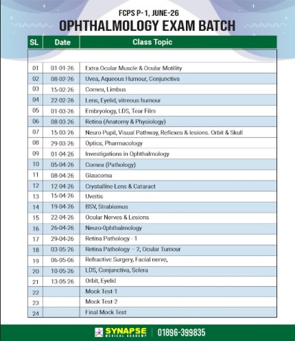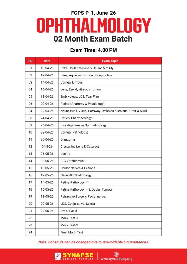 FCPS P-1 Ophthalmology 2 Month Challenge Only Exam Batch Jan-26