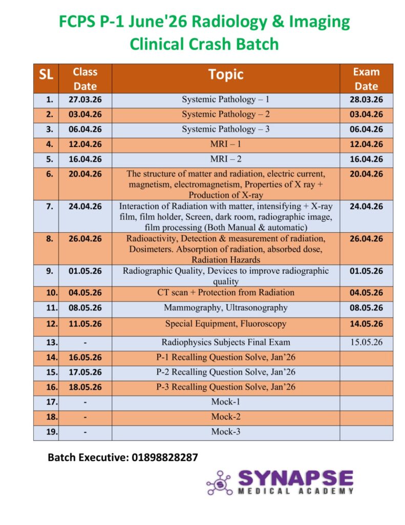 🔹 FCPS P-1 Radiology & Imaging Sheet – (সর্বশেষ আপডেটেড ও সমৃদ্ধ সংস্করণ)