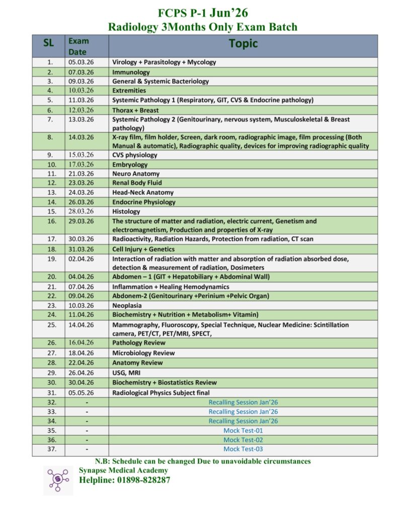 FCPS P-1 Radiology & Imaging Only Exam Batch, June-26