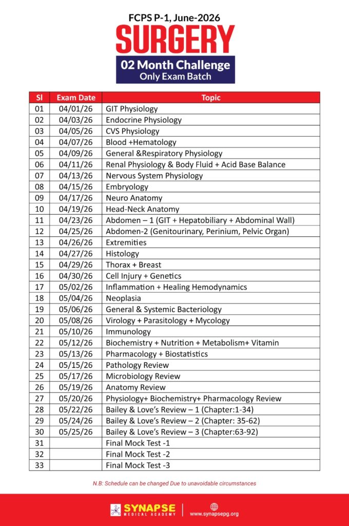 FCPS P-1 Surgery 2 Month Challenge only Exam Batch June-26